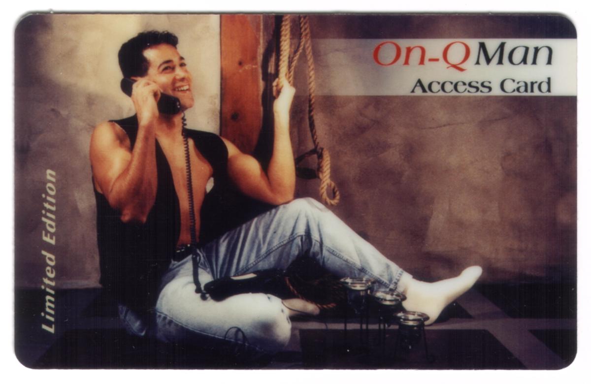 The card includes the text "On-Q Man Access Card" in the upper right corner, with "On-Q" in red and "Man" in black. Along the left edge of the card, the phrase "Limited Edition" is printed vertically in gold italic font. The image was photographed by Freddie Niem. Keywords associated with the card also include model Nick Tacy, and the item is connected to the Bay Area Magazine On-Q Man Personal Connection Access Card.