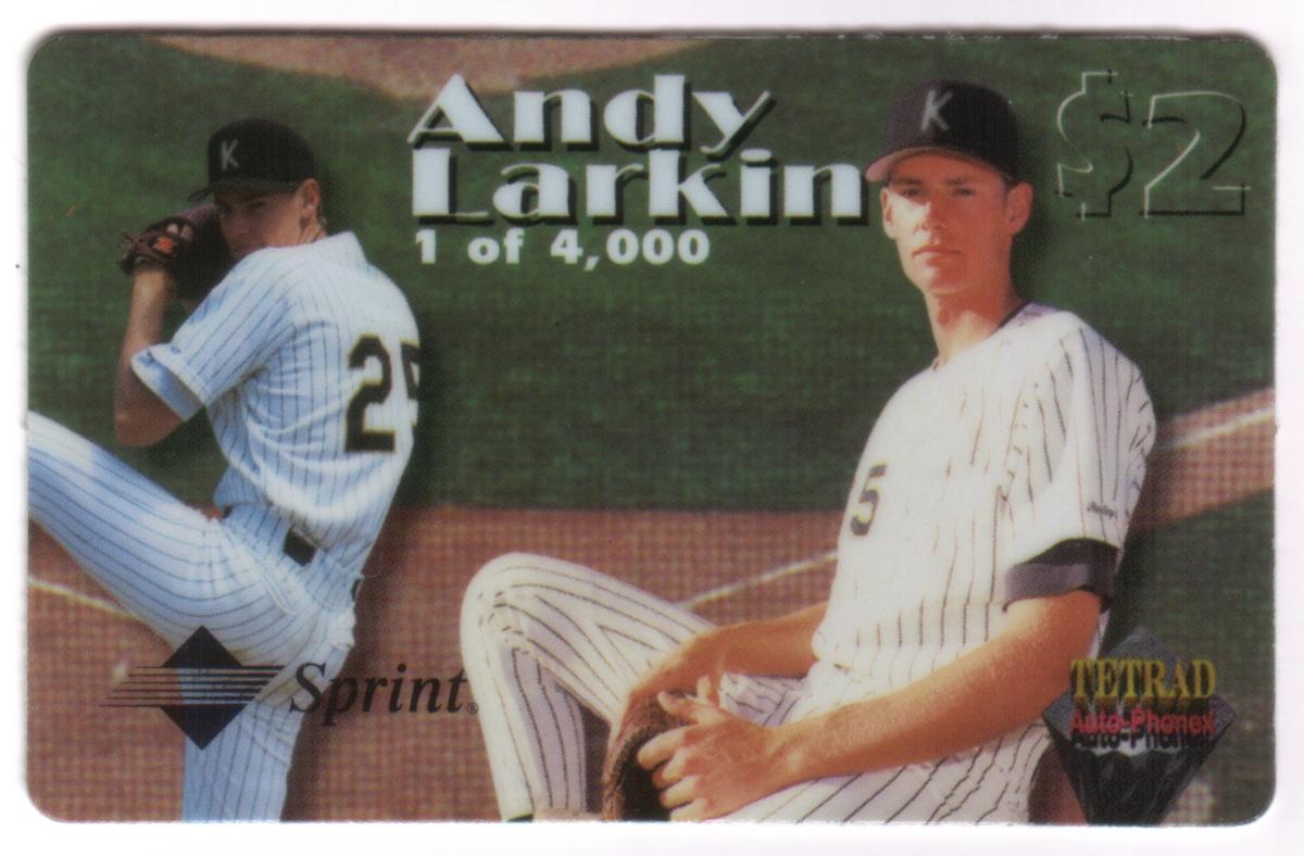 The card’s design balances action photography with clear, readable text elements, making it visually appealing for collectors interested in baseball memorabilia. The inclusion of "Sprint" on the card likely highlights the athletic motion captured in the image. This card is part of the Auto-Phonex Tetrad Baseball collection, featuring Andy Larkin in a dynamic sports pose.