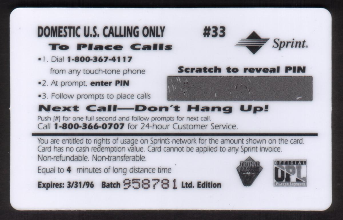 Since we have the world's largest inventory of USA phonecards for collectors, you will not necessarily receive the identical serial/batch/PIN number that we have scanned/pictured.