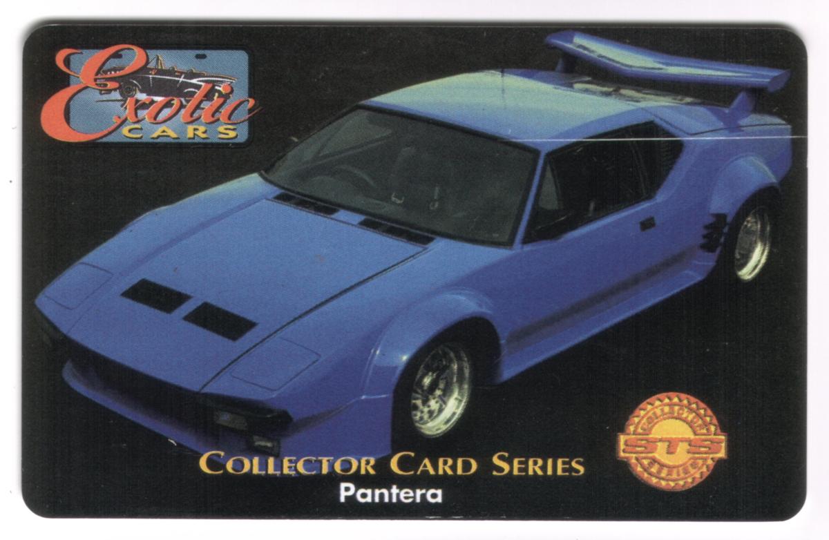 This card is part of a collectible series focused on classic automobiles and exotic cars, specifically highlighting the Pantera model. The combination of the car image, series branding, and issuer mark makes this collectible card a prized item for enthusiasts of classic and exotic transportation memorabilia.