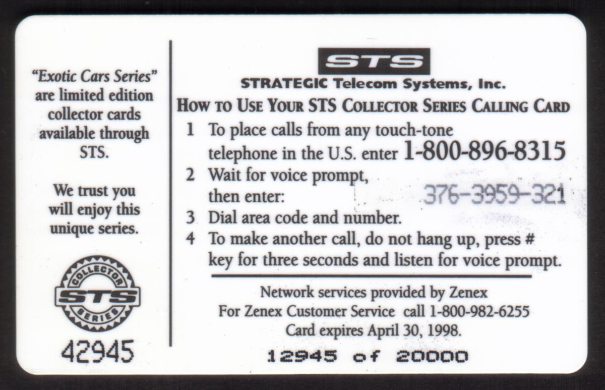 Since we have the world's largest inventory of USA phonecards for collectors, you will not necessarily receive the identical serial/batch/PIN number that we have scanned/pictured.