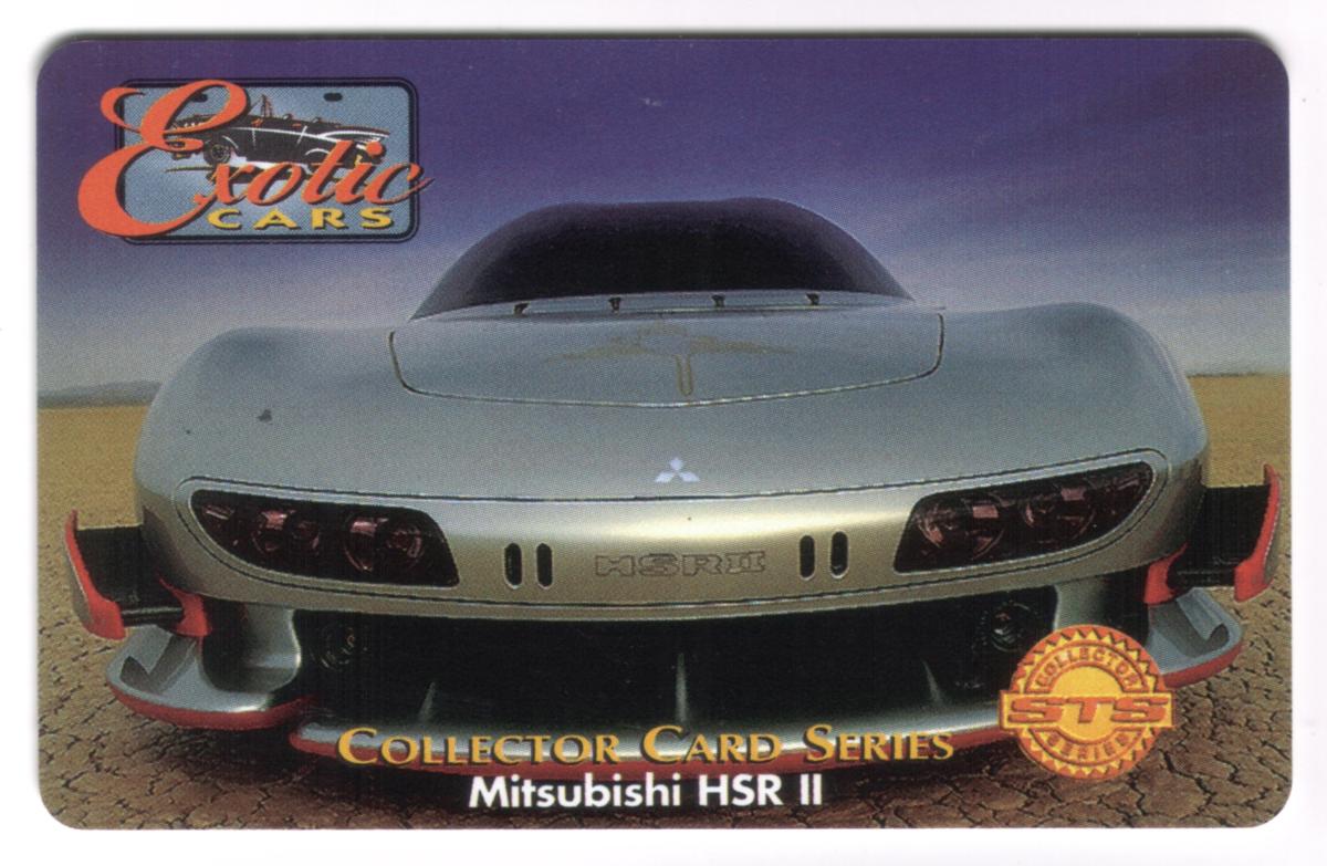 The overall design highlights this card as a collectible item dedicated to classic transportation, particularly focusing on rare and exotic automobiles like the Mitsubishi HSR II concept vehicle.