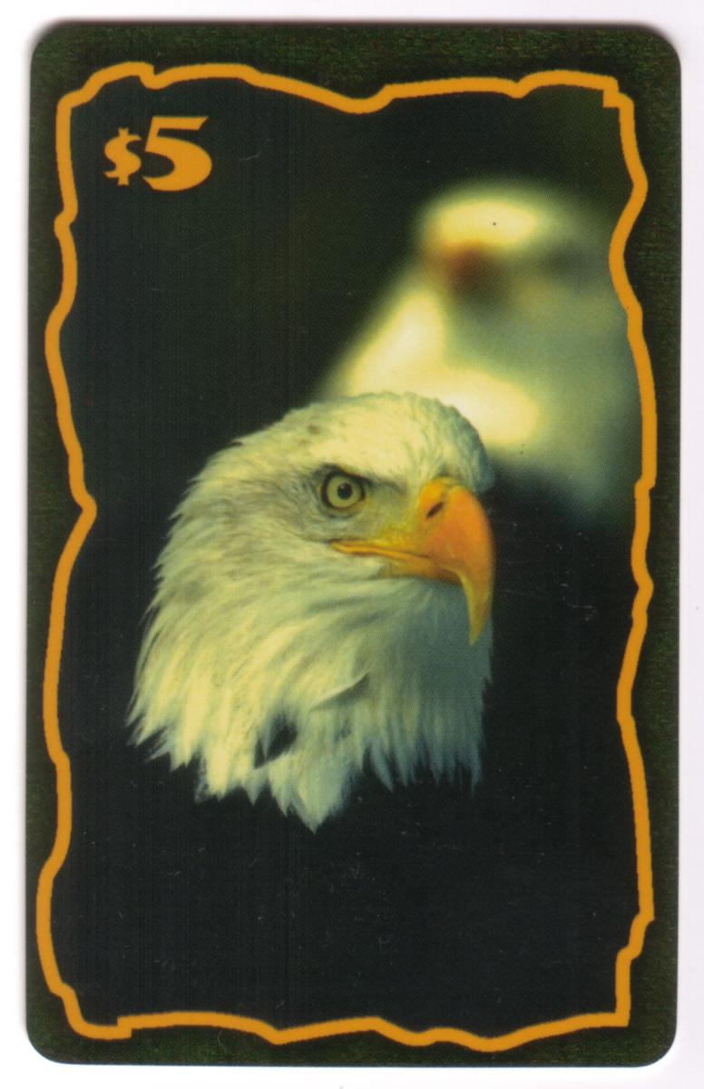 The card is part of the Wildlife Series and is issued by Karis Communications, as indicated by the text printed in clear, legible font on the front. The denomination of the card is $5, shown on the surface near the eagle image. The design highlights the majesty and importance of the American Bald Eagle, a symbol of wildlife conservation in the United States.