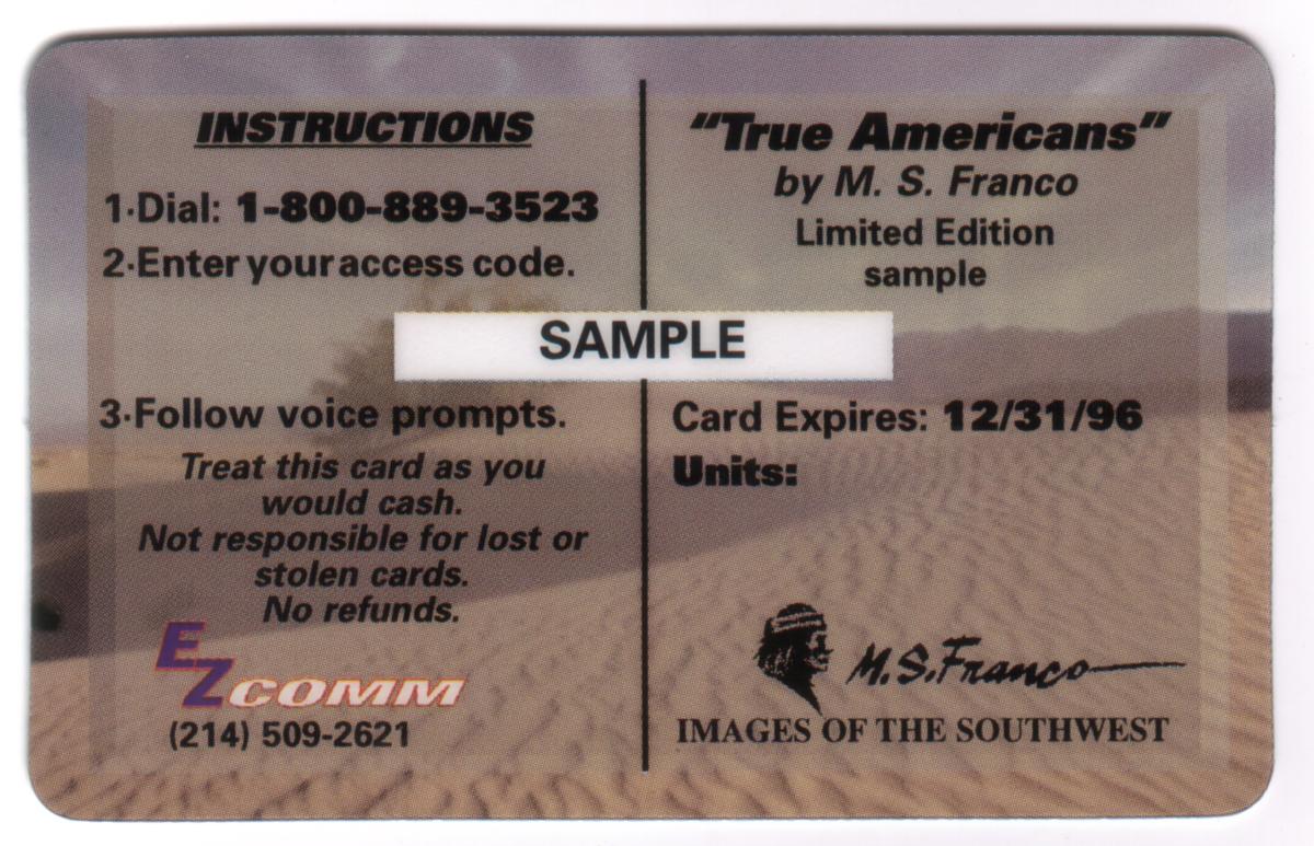 Since we have the world's largest inventory of USA phonecards for collectors, you will not necessarily receive the identical serial/batch/PIN number that we have scanned/pictured.