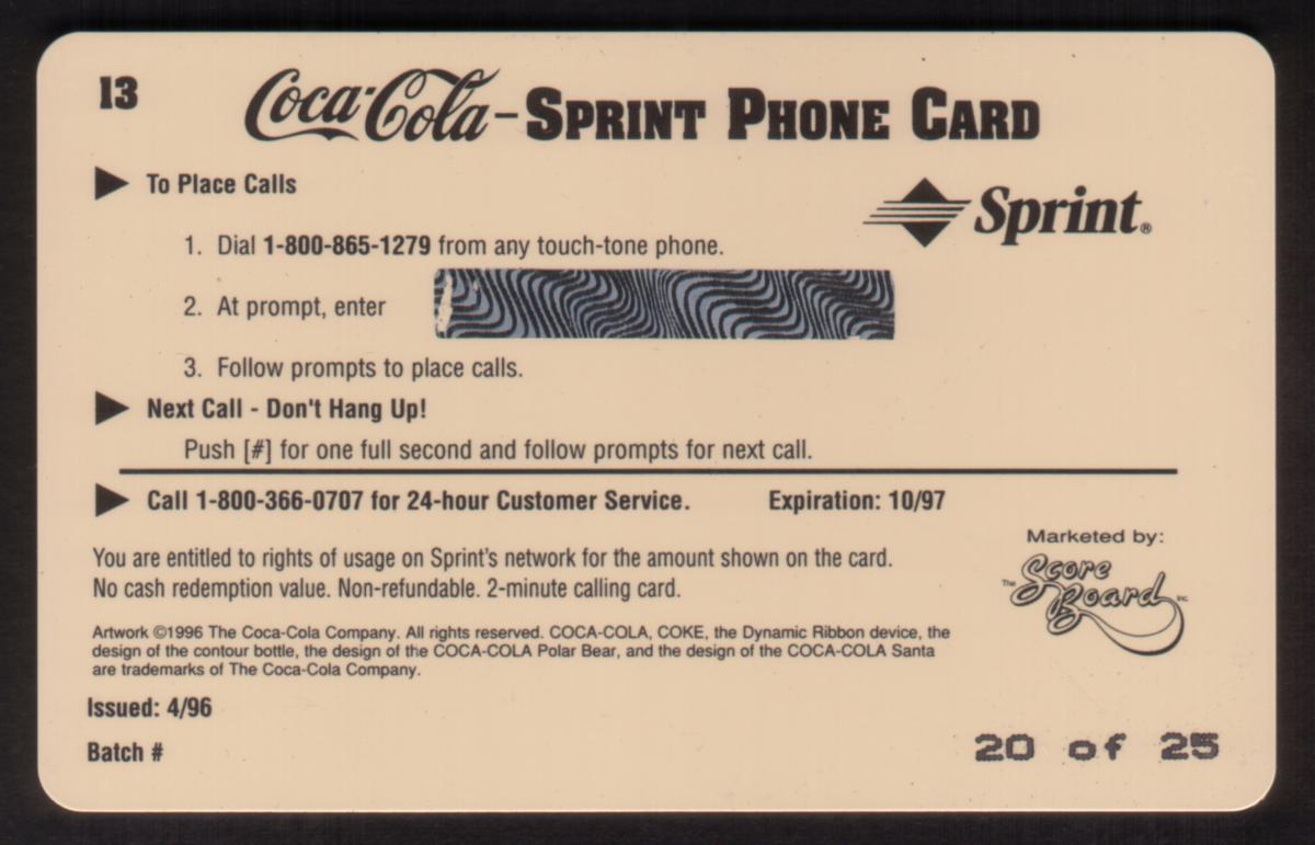 Since we have the world's largest inventory of USA phonecards for collectors, you will not necessarily receive the identical serial/batch/PIN number that we have scanned/pictured.