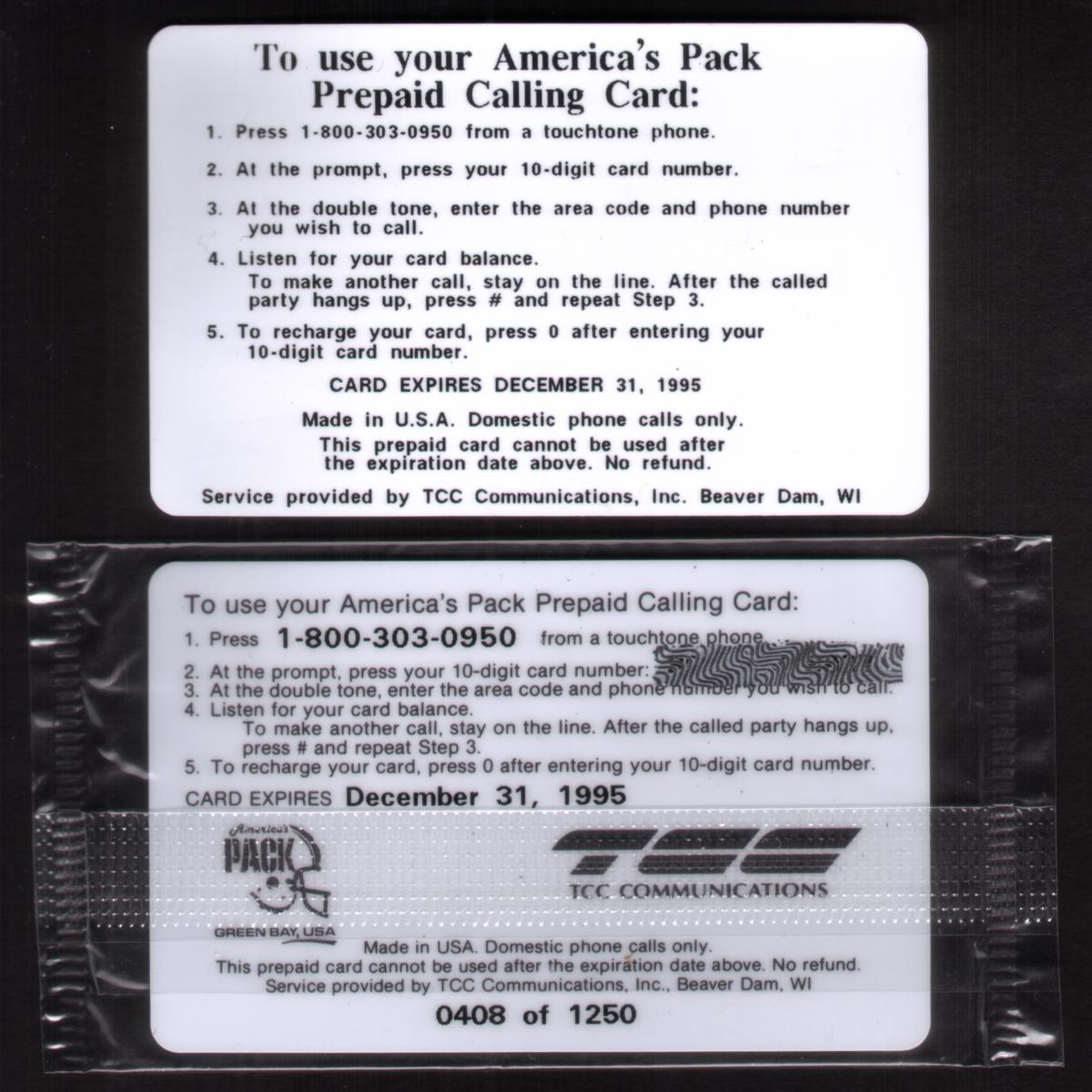 Since we have the world's largest inventory of USA phonecards for collectors, you will not necessarily receive the identical serial/batch/PIN number that we have scanned/pictured.