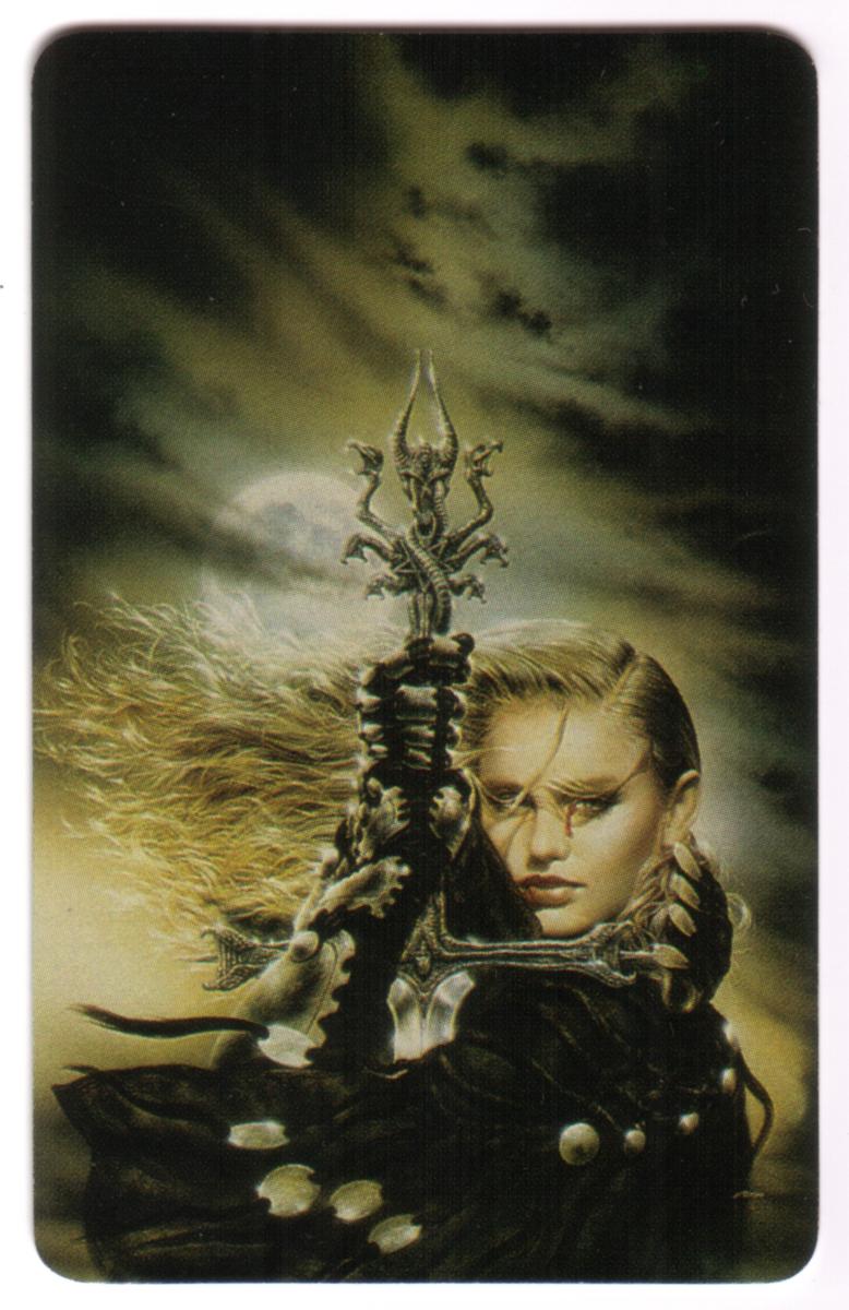 This phone card is a collectible item combining telecommunications utility with the distinctive fantasy art style of Luis Royo. The use of bold, gothic imagery and the thematic emphasis on surreal emotions make it a notable piece for collectors interested in fantasy art and phone cards.