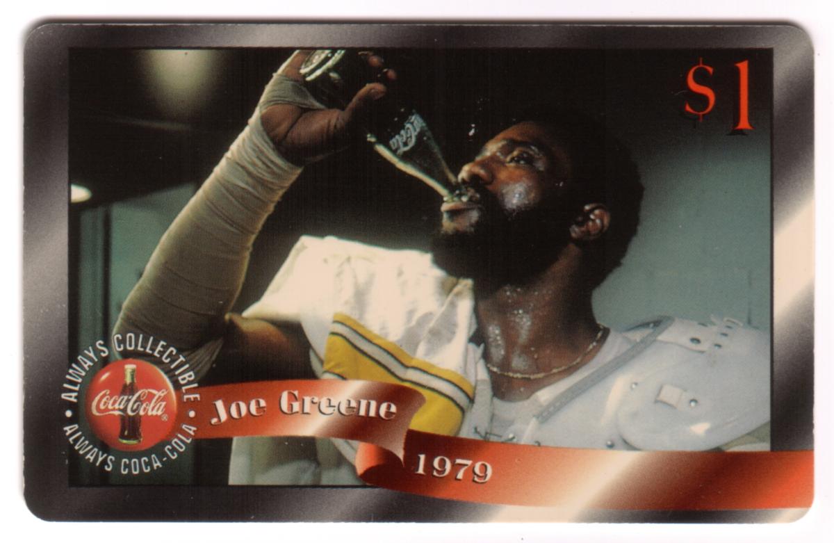 This item is identified as Joe Greene (1979) Coke Card #1 of 48, produced by The Score Board Inc. It relates to sports football and celebrates Joe Greeneās association with Coca-Cola, highlighting both his sports legacy and the brand connection.
