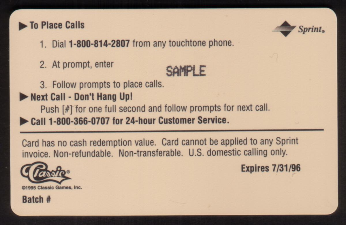 Since we have the world's largest inventory of USA phonecards for collectors, you will not necessarily receive the identical serial/batch/PIN number that we have scanned/pictured.