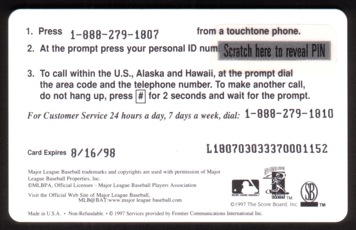 Since we have the world's largest inventory of USA phonecards for collectors, you will not necessarily receive the identical serial/batch/PIN number that we have scanned/pictured.