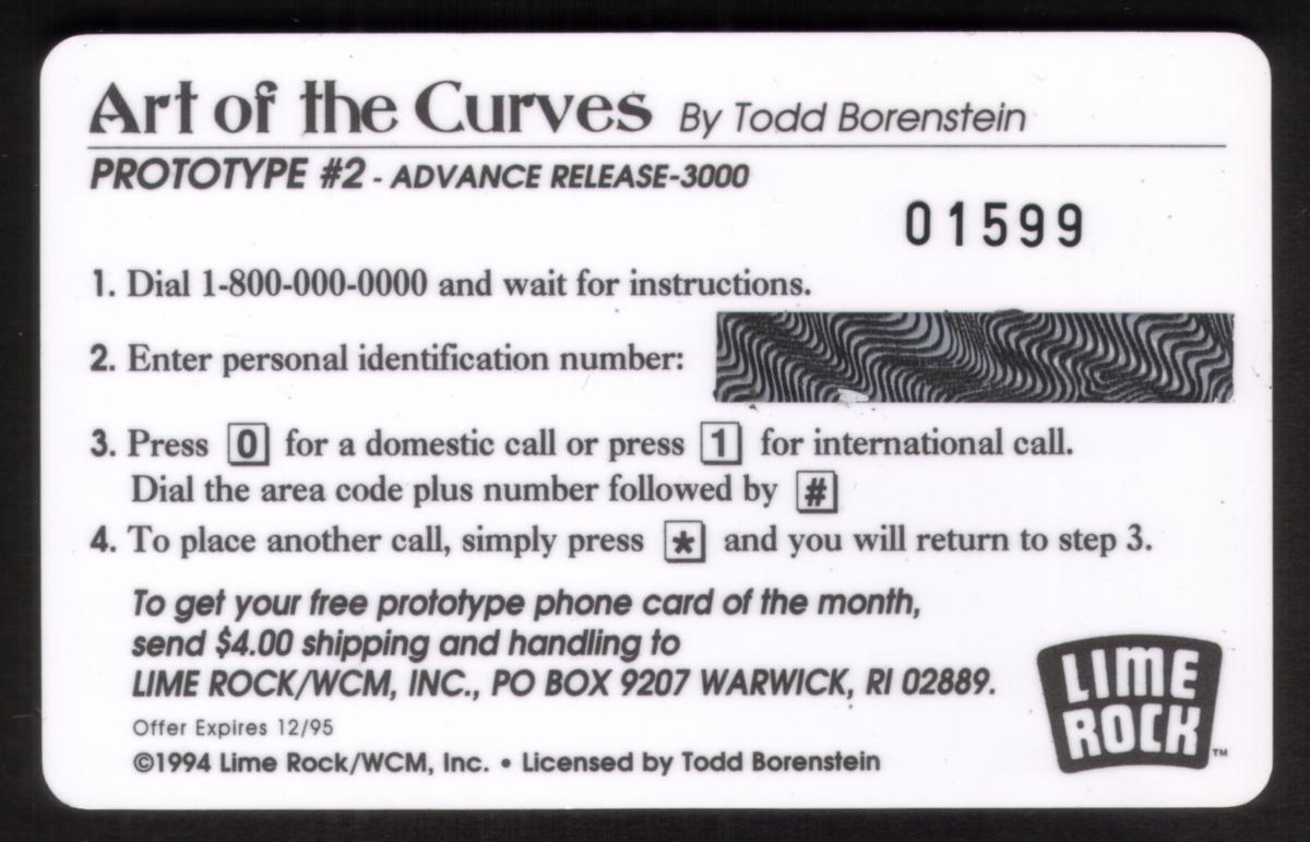 Each card has a $0 value printed on the front, and the artwork is signed with Todd Borenstein’s initials on the bottom left card. This set is identified as a prototype edition connected to Lime Rock and WorldCom, Inc., aligning it as a collectible series showcasing Borenstein’s pin-up art style.