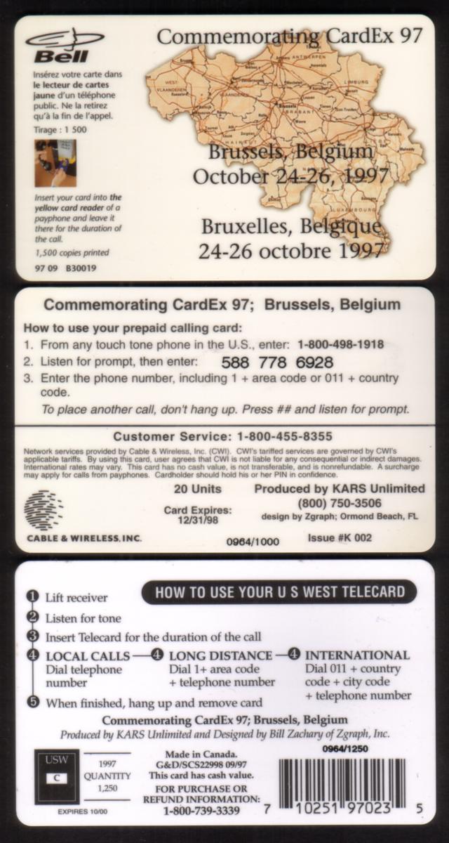 | CardEx 97 Belgium Show: US West, Bell Canada, C&W Set of 3 In Folder |