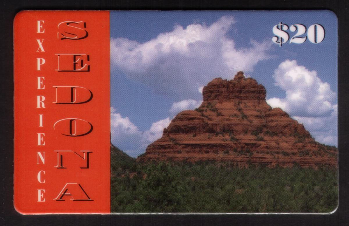 The card displays the text "Sedona Arizona Experience Bell Rock" along the top left corner, indicating the location depicted. The denomination of "$20" is visible near the bottom right, specifying the card’s value. The card also features the words "Talk Time" in the lower right area, associating it with prepaid phone service usage.