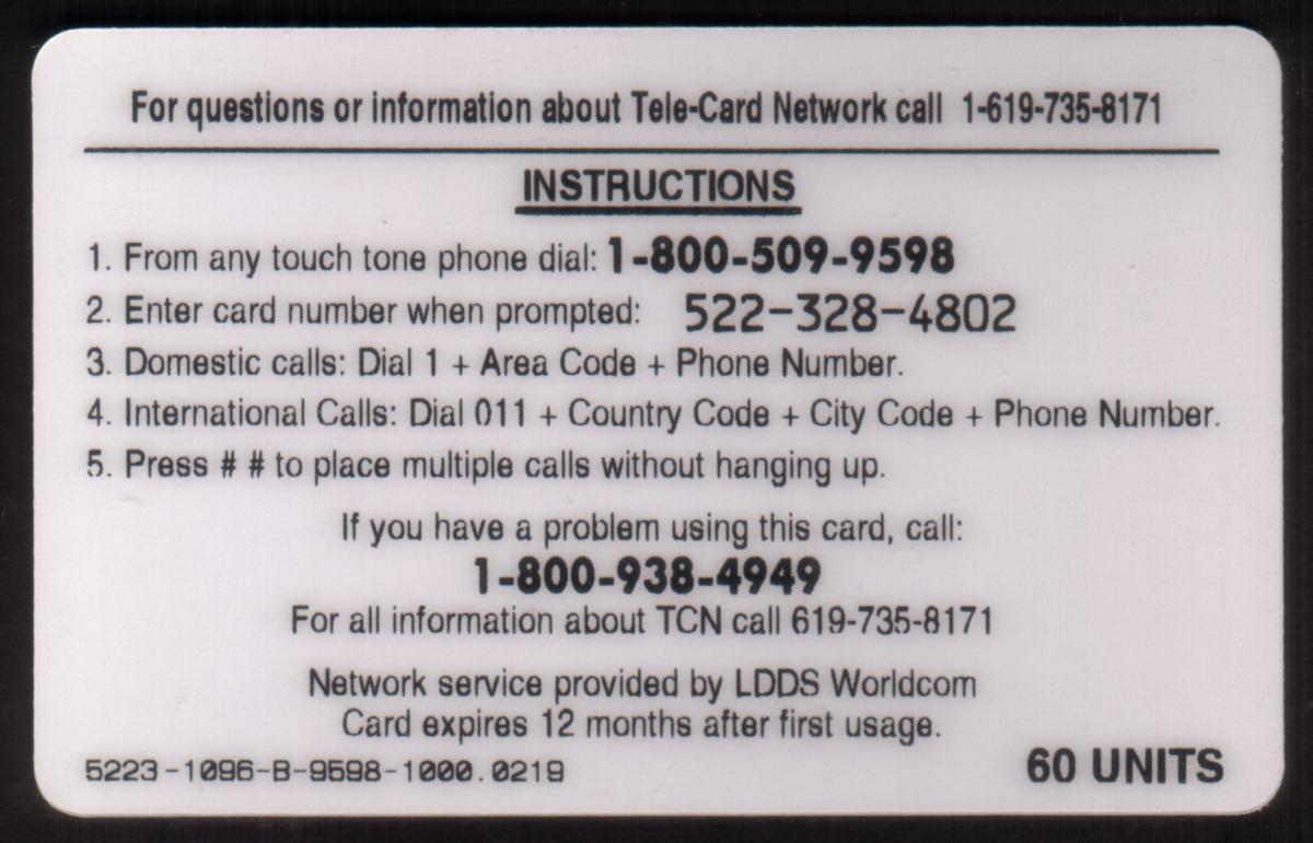 Since we have the world's largest inventory of USA phonecards for collectors, you will not necessarily receive the identical serial/batch/PIN number that we have scanned/pictured.
