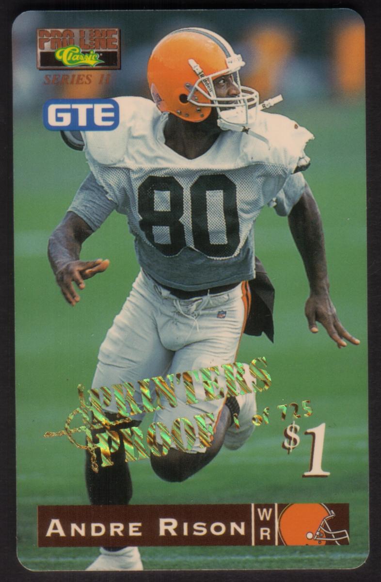 This card is part of The Score Board series, known as Proline 2, and is card number 21 of 30. It prominently links to football and NFL collectible themes, focusing on the wide receiver Andre Rison during his time with the Cleveland Browns.