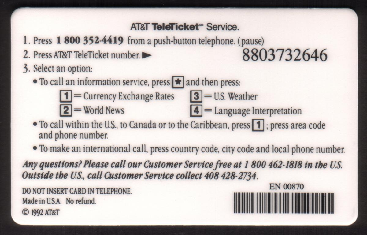 Since we have the world's largest inventory of USA phonecards for collectors, you will not necessarily receive the identical serial/batch/PIN number that we have scanned/pictured.