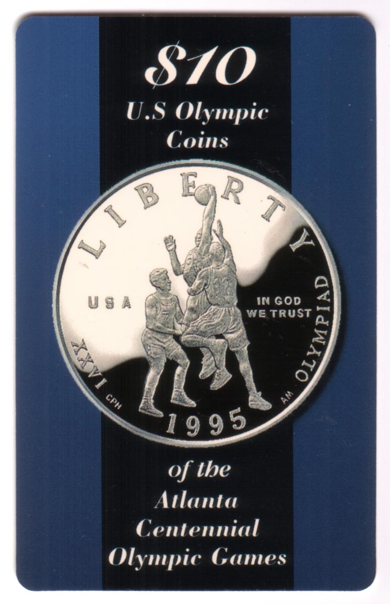 This collectible card serves as a tribute to the basketball sport during the Atlanta Centennial Olympics, combining elements of currency, collectibles, and sports memorabilia in a compact format. It is manufactured by recognized entities involved in creating licensed Olympic collectibles, making it a valued item for collectors interested in Olympic history and sports-themed numismatic items.
