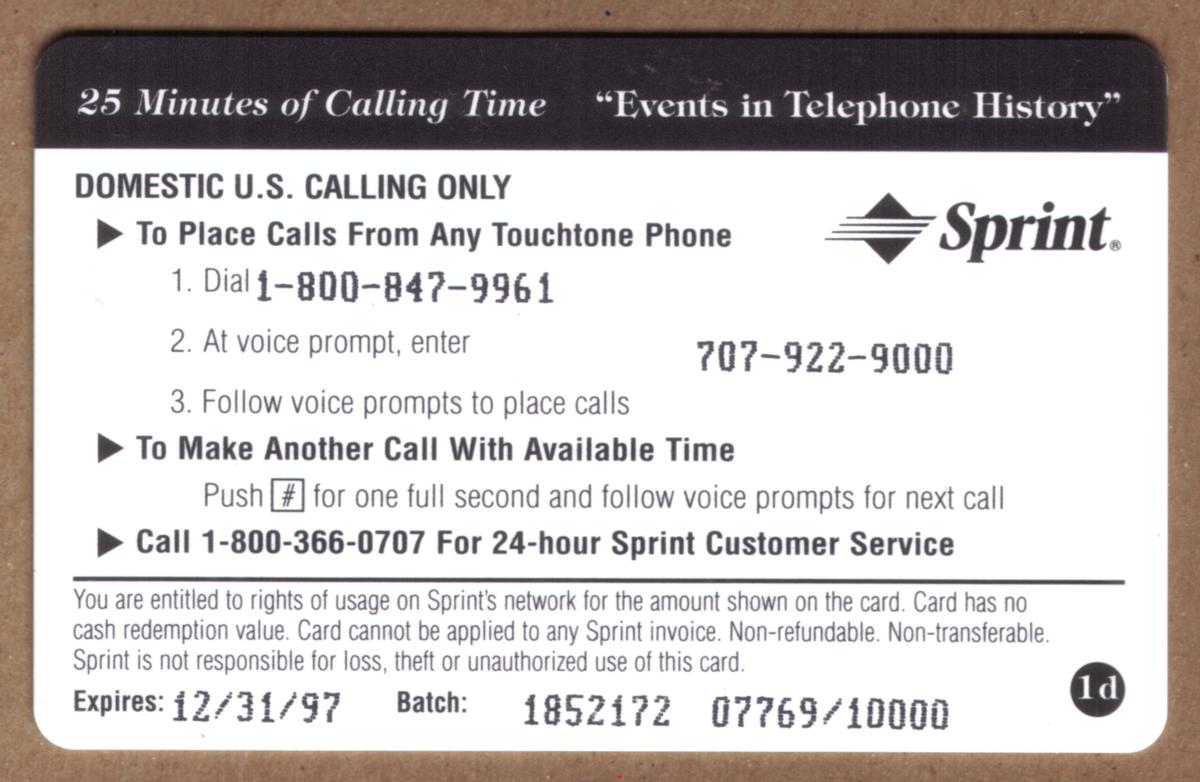 Since we have the world's largest inventory of USA phonecards for collectors, you will not necessarily receive the identical serial/batch/PIN number that we have scanned/pictured.