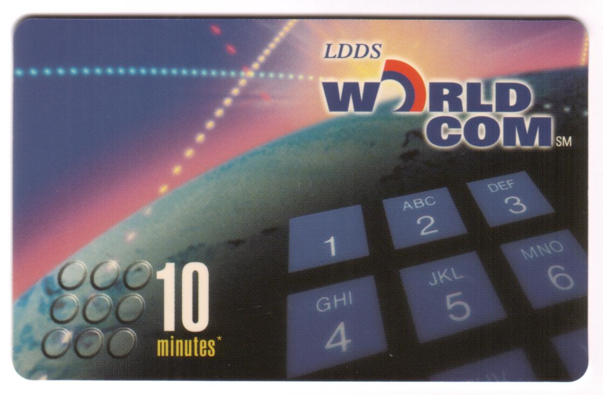 Overall, this LDDS WorldCom phone card presents a modern, technology-inspired design emphasizing global telephone service and minute-based prepaid usage. The absence of any additional text or imagery keeps the focus on the branding and the calling function of the card.