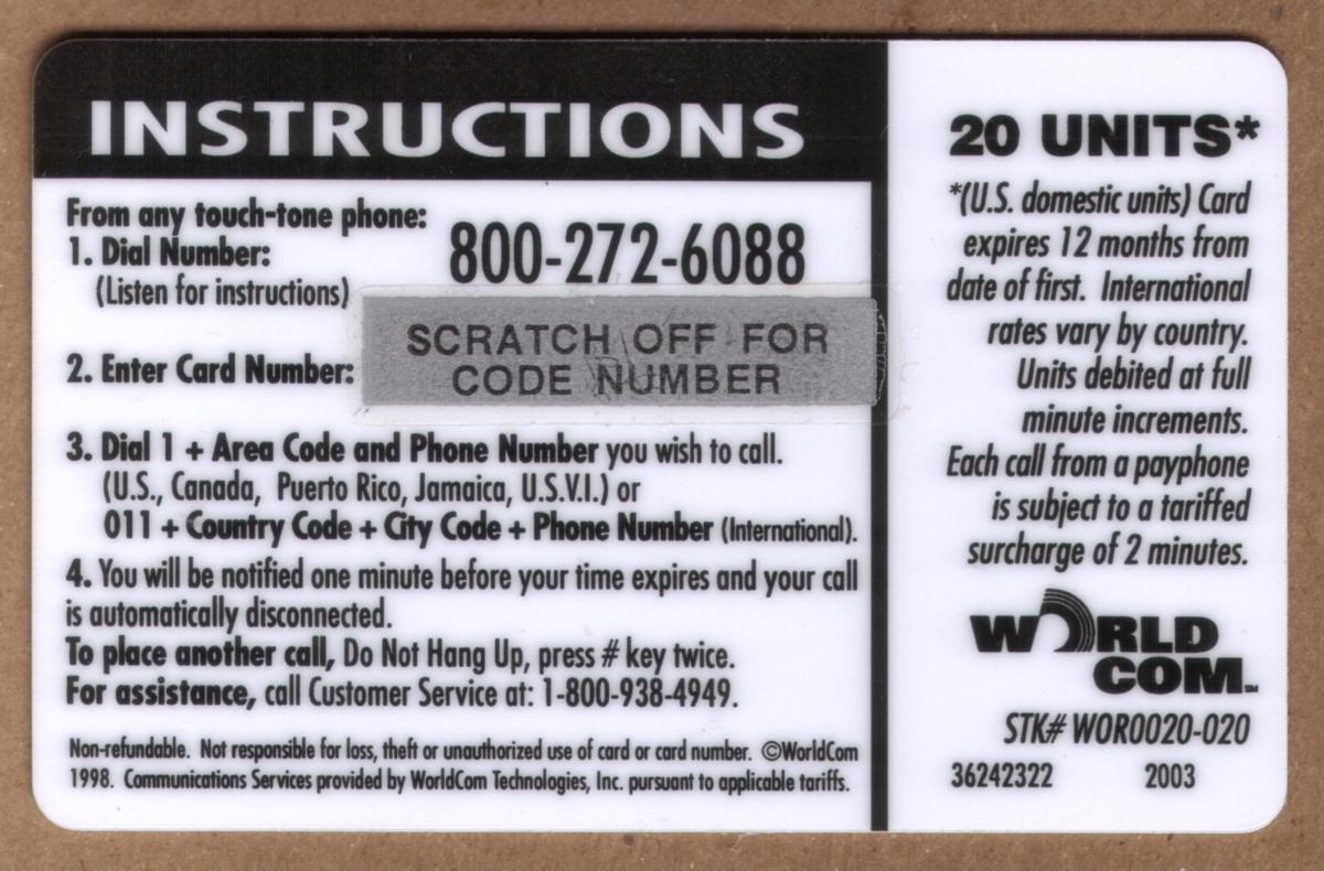 Since we have the world's largest inventory of USA phonecards for collectors, you will not necessarily receive the identical serial/batch/PIN number that we have scanned/pictured.