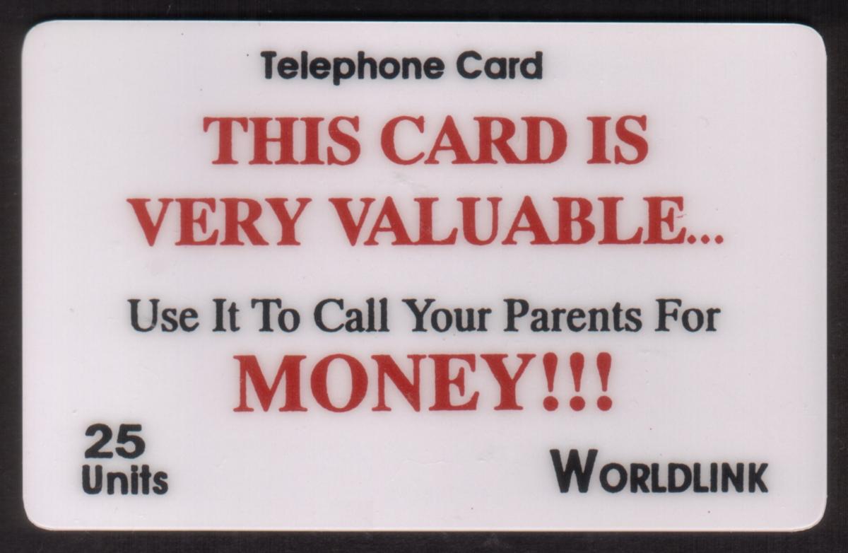 The card includes the University of Georgia name clearly, tying it to a well-known educational institution. Additional text on the card states "This Card Is Very Valuable... Money Parents," reinforcing the theme of using the card for making calls specifically in a student-family context. The issuer is WorldLink Commun., a telecommunications company, reflecting the card's association with calling and connectivity.