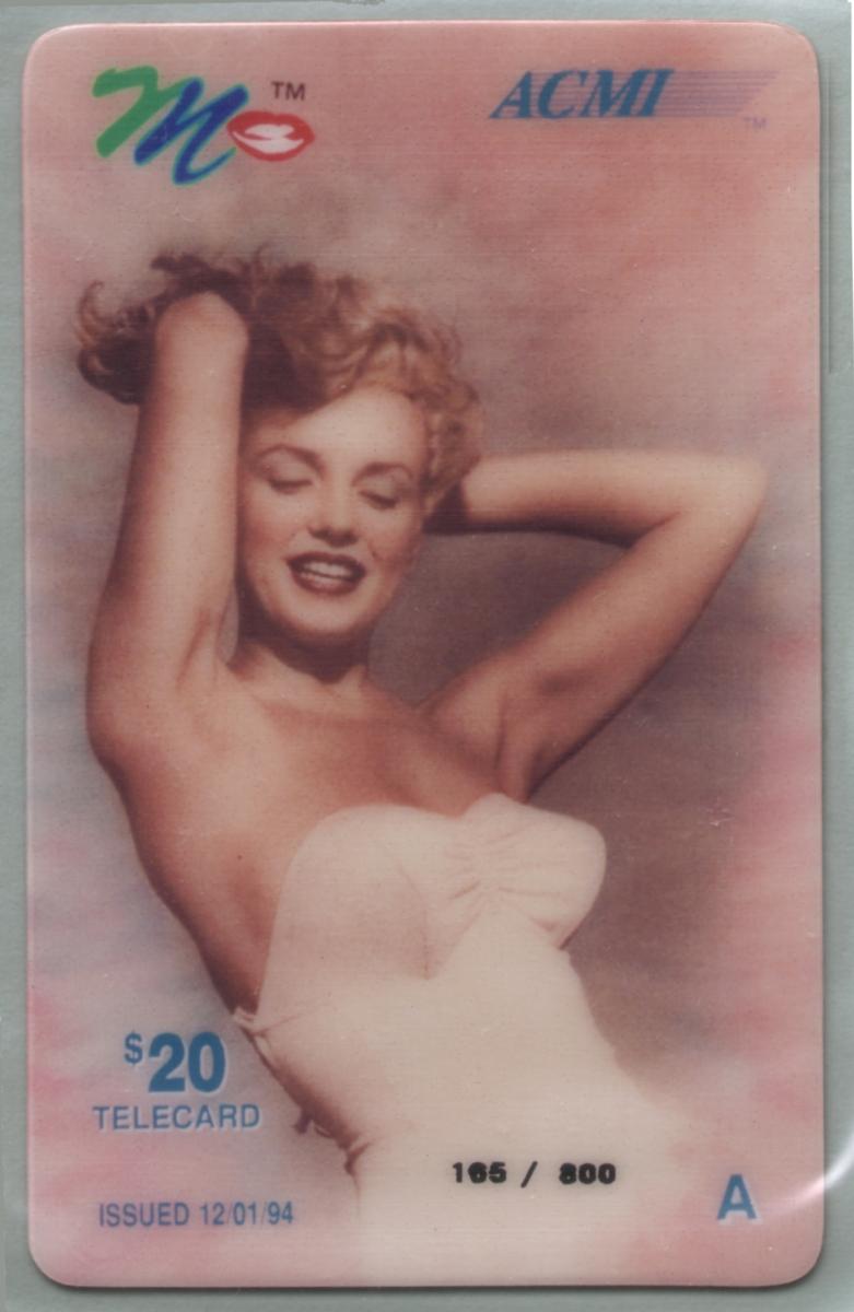 The card is associated with entertainment, focusing on Hollywood’s golden era and its celebrated movie stars. The text "Marilyn Monroe In White 1 Piece Bathing Suit ('A') 12/01/94" is included, indicating the date related to the image or issue. The card also features the logo and trademark "Laser Radio," confirming the manufacturer.