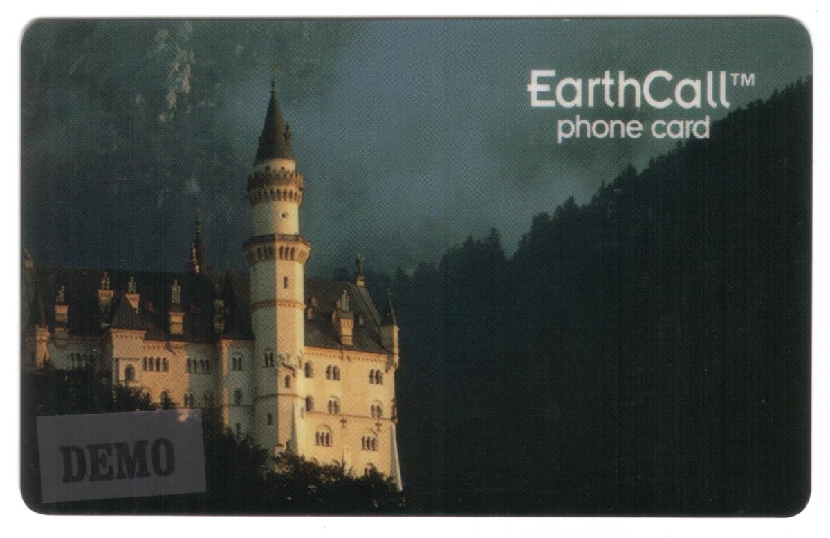 The card includes the text "Neuschwanstein Castle In Bavaria Germany" prominently displayed in the top right area above the castle image. The year "1993" is indicated next to the location name. The value of the card is marked as "20u" near the center-right section. The card also displays company and issuing information at the bottom center: the word "EarthCall" is clearly printed in white lettering against a blue background.
