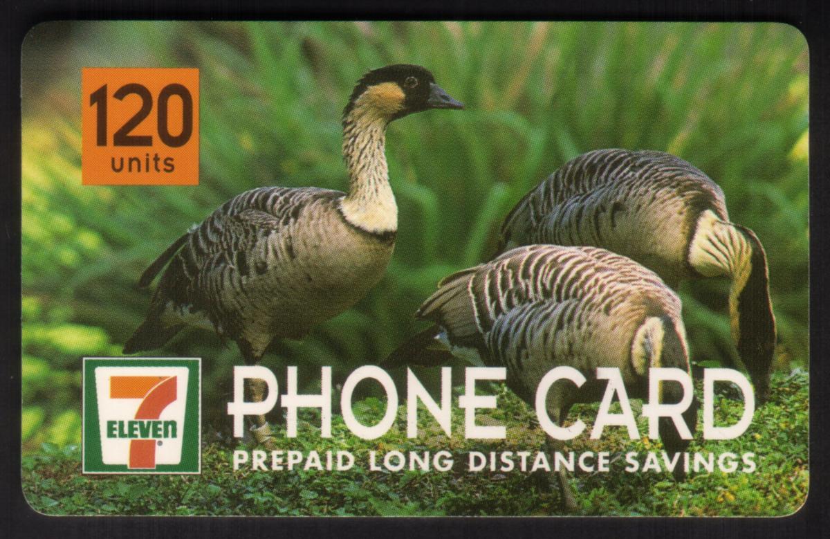This collectible phone card features an image of Hawaiian Nene geese at the Honolulu Zoo. The design prominently displays the birds in their natural habitat, showcasing their distinctive plumage and graceful posture. The background includes greenery consistent with the zoo setting.