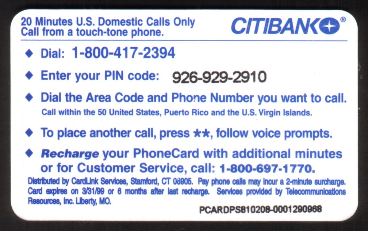 Since we have the world's largest inventory of USA phonecards for collectors, you will not necessarily receive the identical serial/batch/PIN number that we have scanned/pictured.