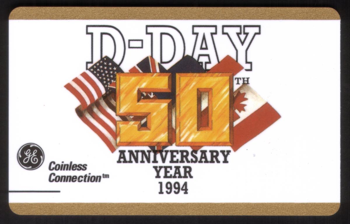 Celebrating the 50th anniversary of D-Day, this vintage card features flags of the US, UK, and Canada, honoring WWII''s pivotal Normandy invasion in 1994. |