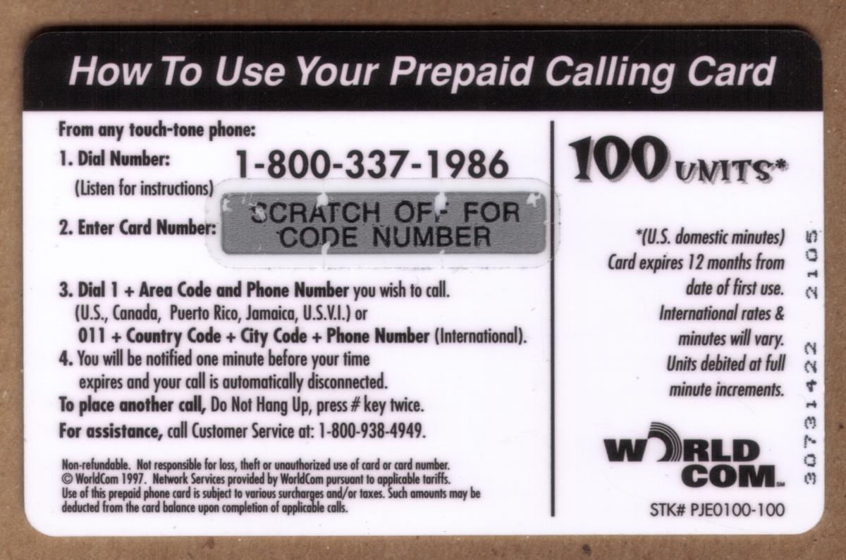 Since we have the world's largest inventory of USA phonecards for collectors, you will not necessarily receive the identical serial/batch/PIN number that we have scanned/pictured.