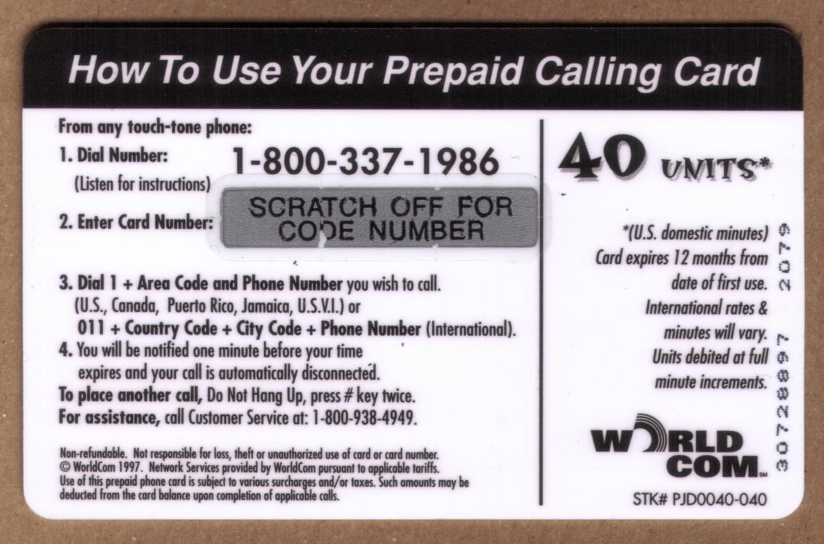 Since we have the world's largest inventory of USA phonecards for collectors, you will not necessarily receive the identical serial/batch/PIN number that we have scanned/pictured.