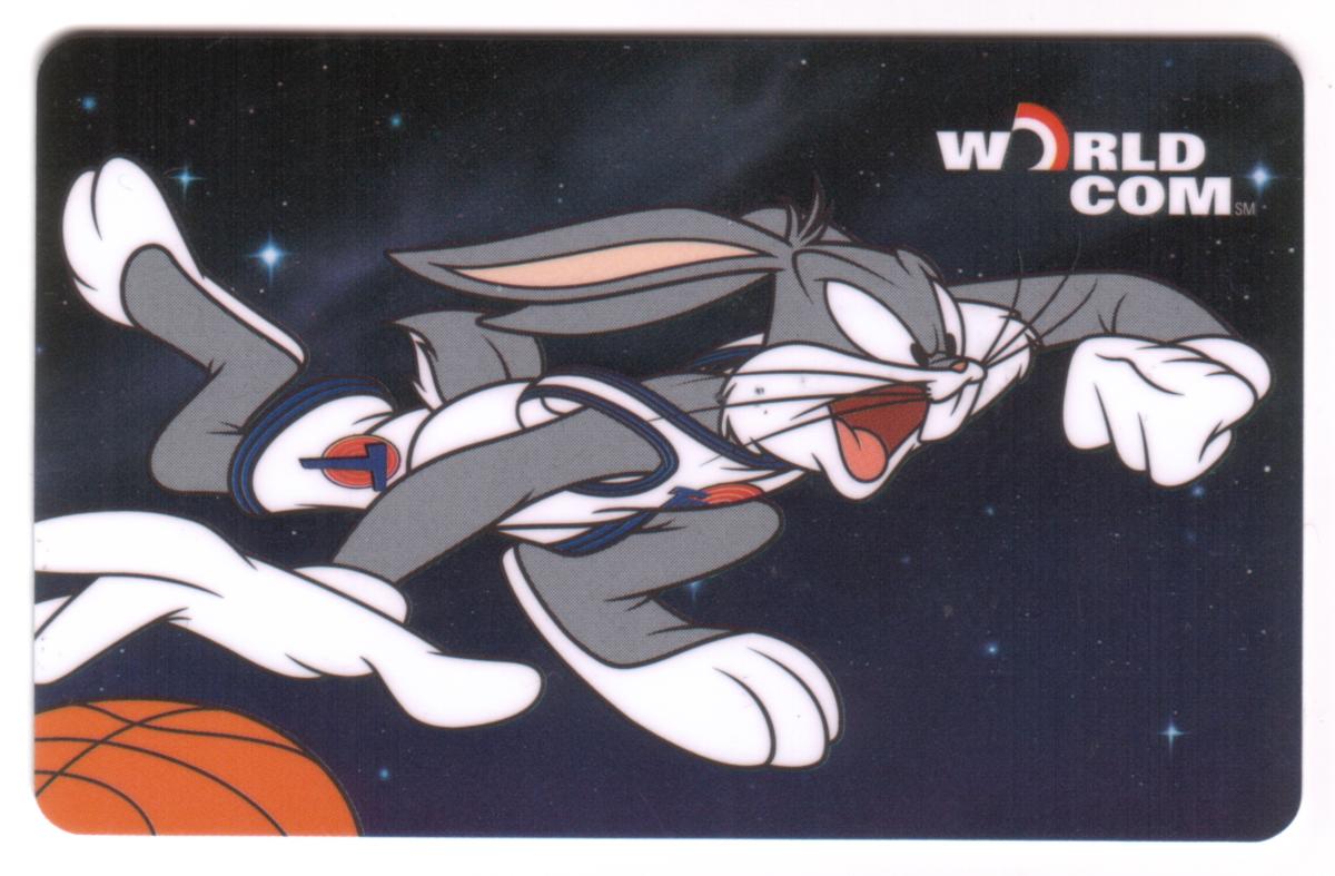 This card combines entertainment, art, cartoons, animation, films, children’s movies, and sports, specifically basketball, highlighting Warner Bros. and the popular Space Jam franchise. It is a collectible item issued by WorldCom, making it a valuable piece for fans of animation and sports-themed collectibles.