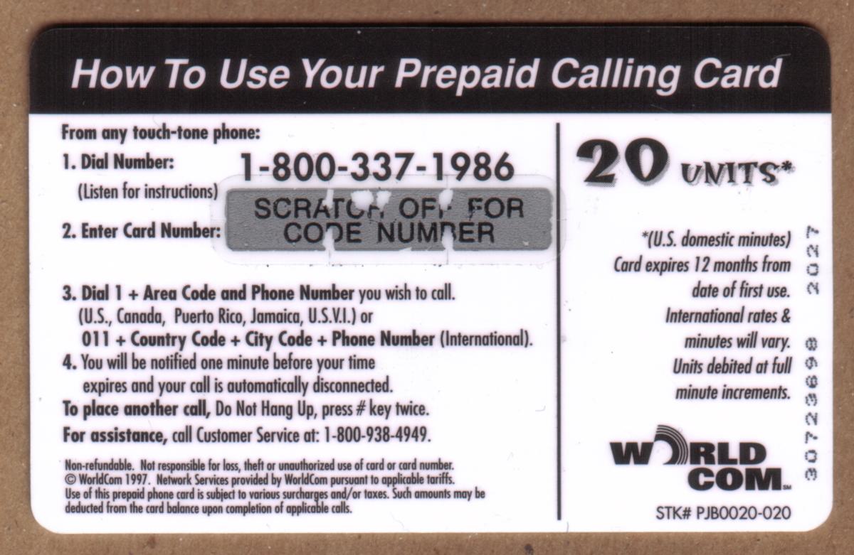 Since we have the world's largest inventory of USA phonecards for collectors, you will not necessarily receive the identical serial/batch/PIN number that we have scanned/pictured.