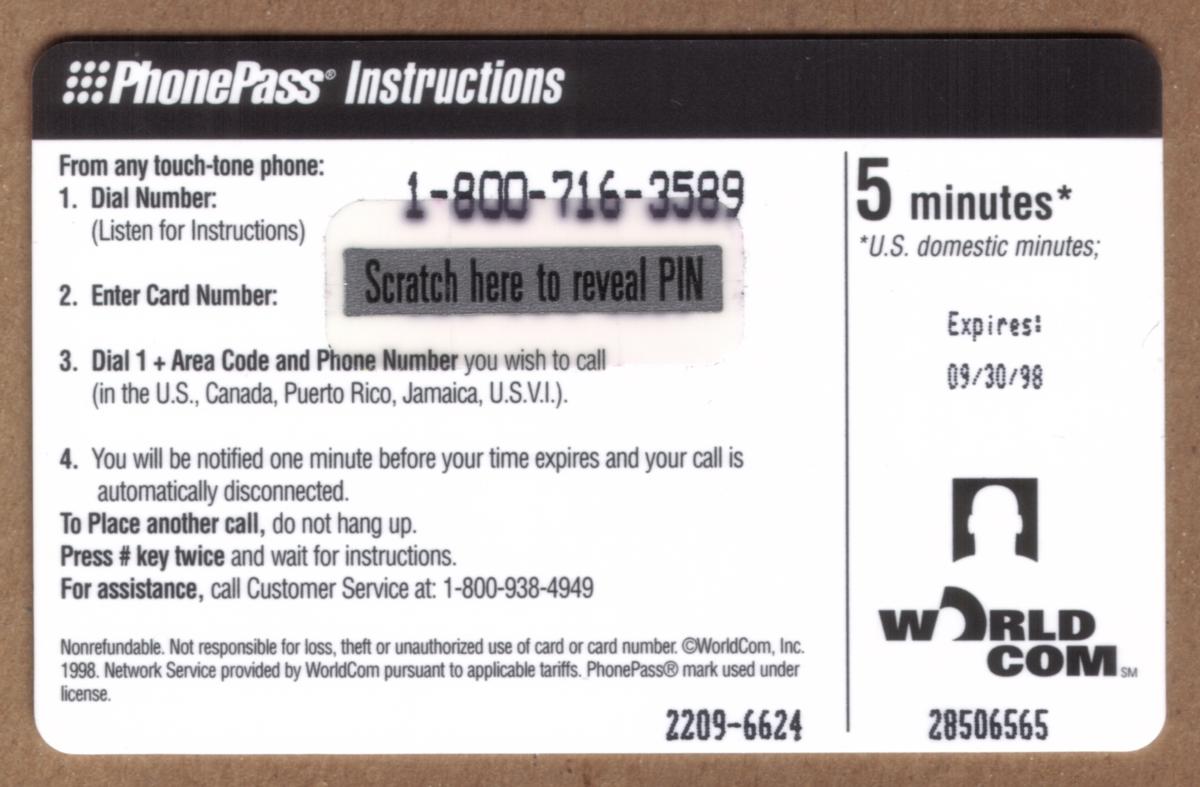 Since we have the world's largest inventory of USA phonecards for collectors, you will not necessarily receive the identical serial/batch/PIN number that we have scanned/pictured.