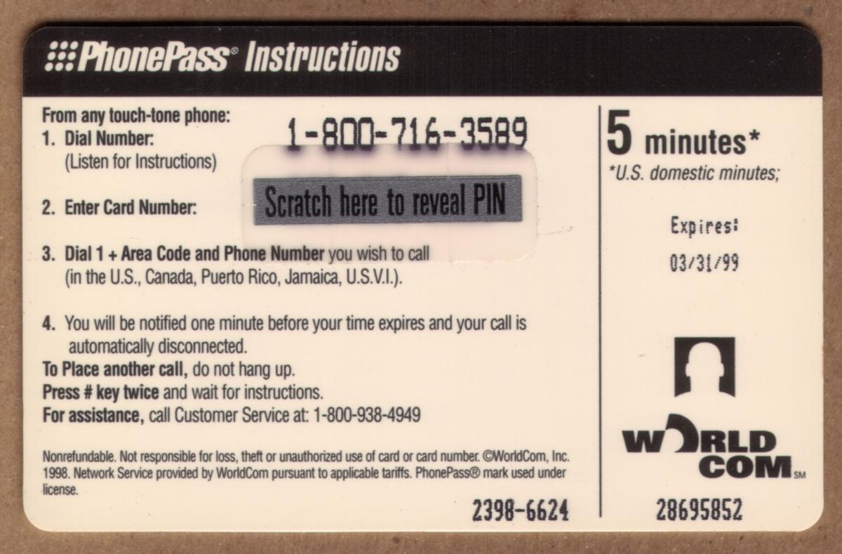 Since we have the world's largest inventory of USA phonecards for collectors, you will not necessarily receive the identical serial/batch/PIN number that we have scanned/pictured.