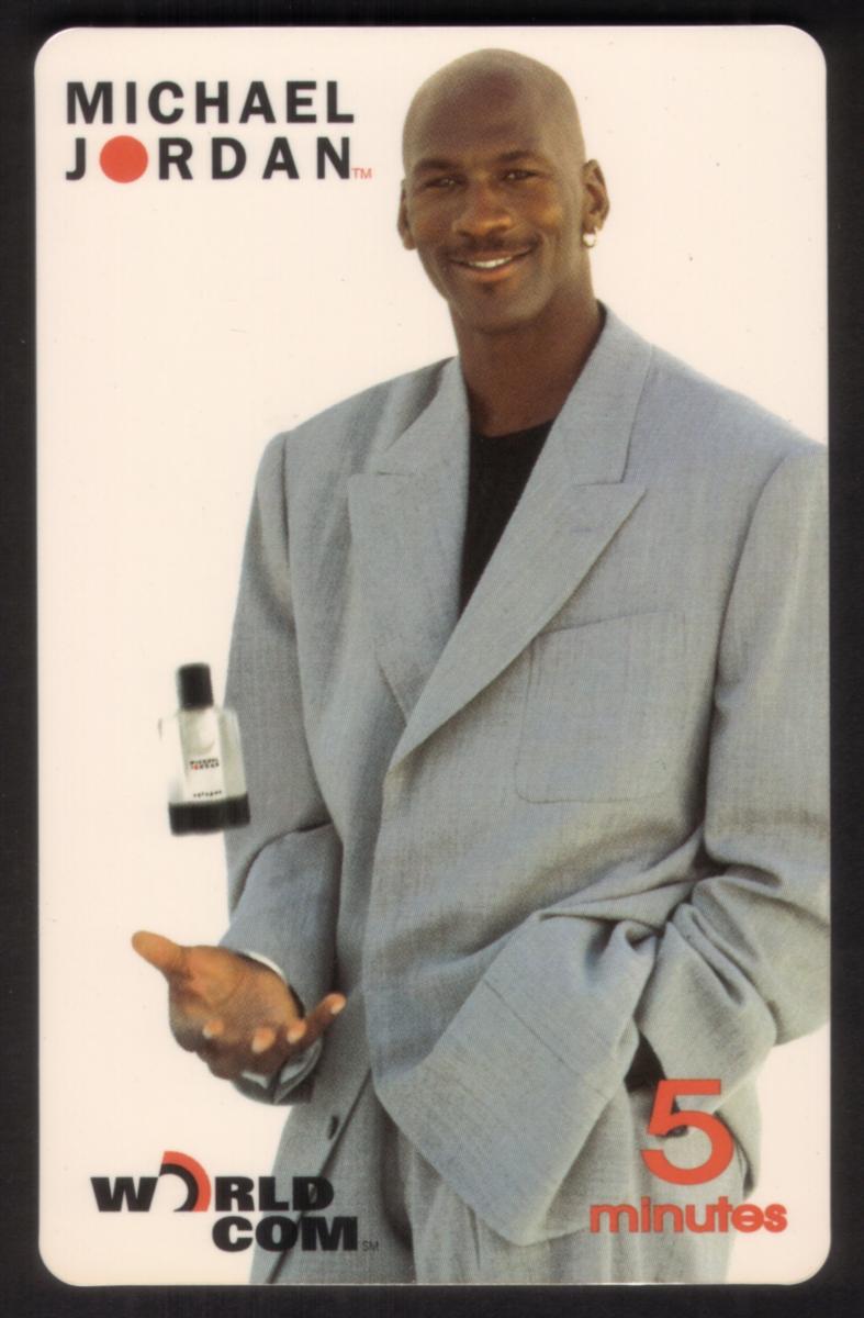 Overall, the card merges themes of basketball, celebrity endorsement, and telecommunications. The presence of Michael Jordan’s image associates the item with notable sports figures and NBA history. The WorldCom logo confirms the telecommunications provider linked to this collectible card.
