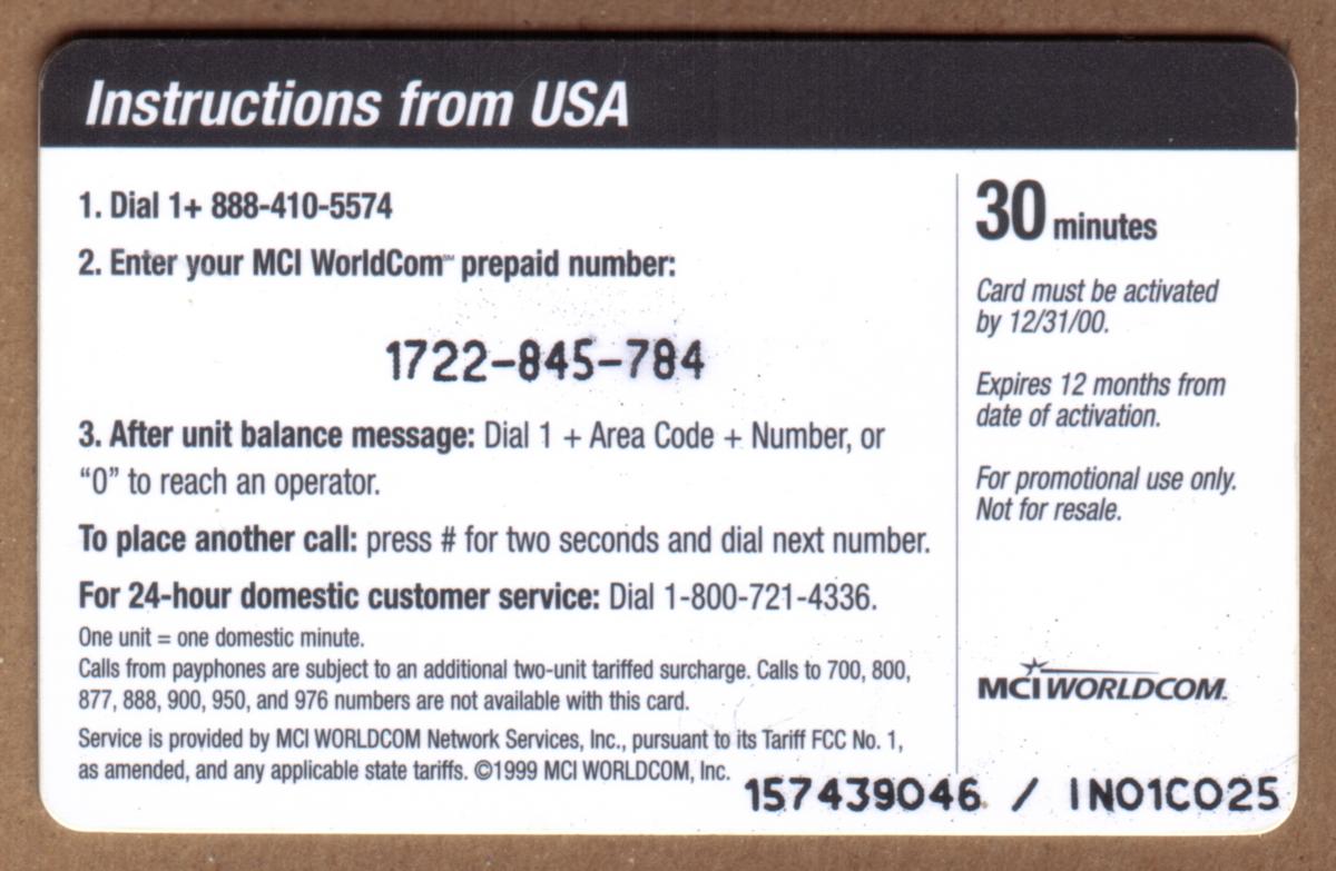 Since we have the world's largest inventory of USA phonecards for collectors, you will not necessarily receive the identical serial/batch/PIN number that we have scanned/pictured.