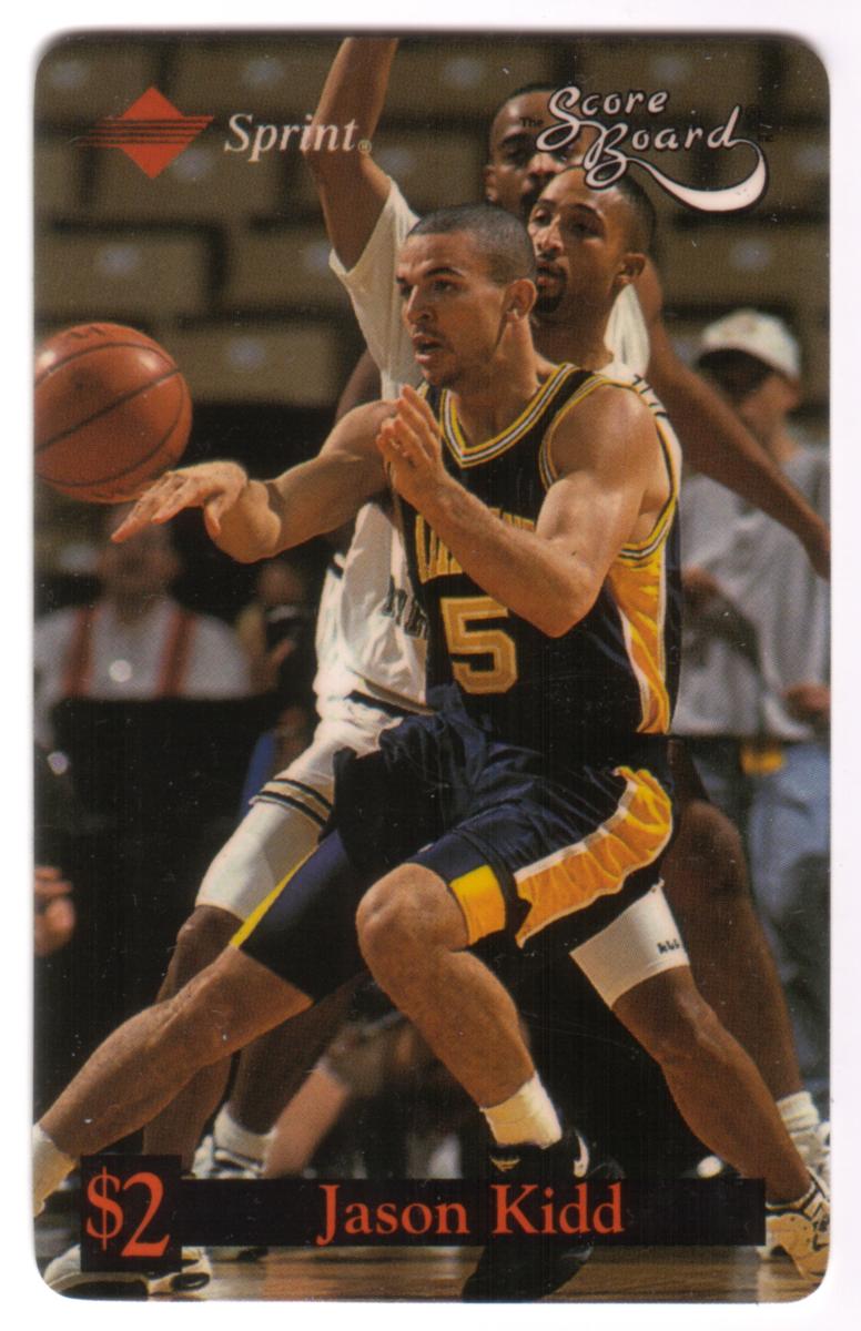 This is a basketball-themed collectible card from the National Basketball Association (NBA), highlighting one of the league’s well-known players, Jason Kidd. The card is issued by The Score Board Inc. and carries the branding of Sprint, a telecommunications company.