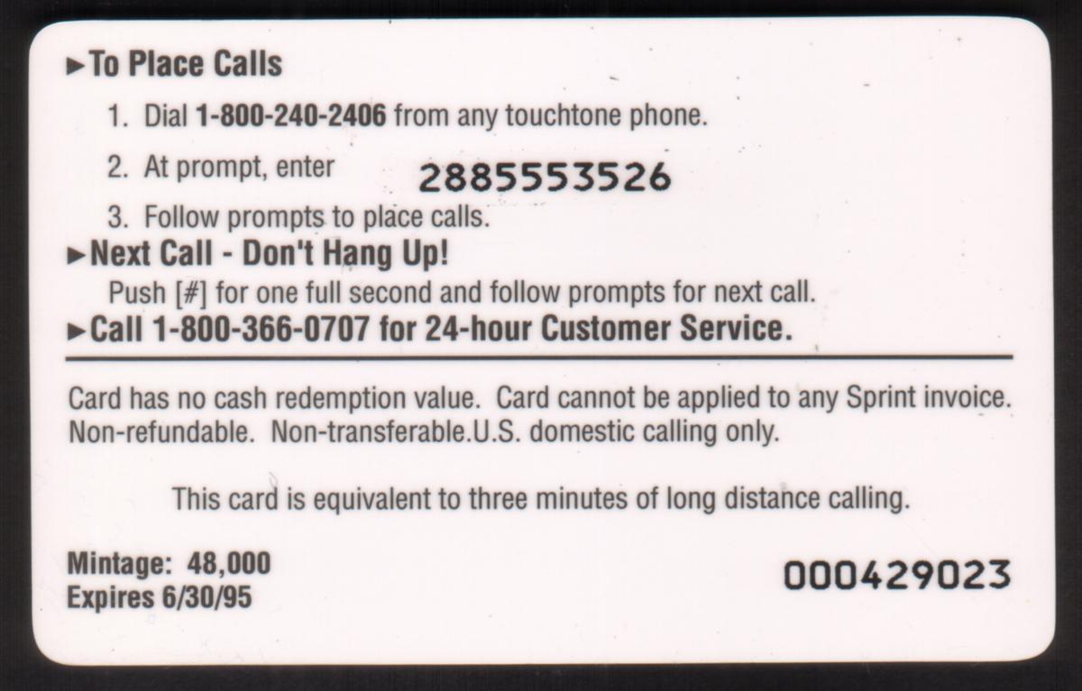 Since we have the world's largest inventory of USA phonecards for collectors, you will not necessarily receive the identical serial/batch/PIN number that we have scanned/pictured.