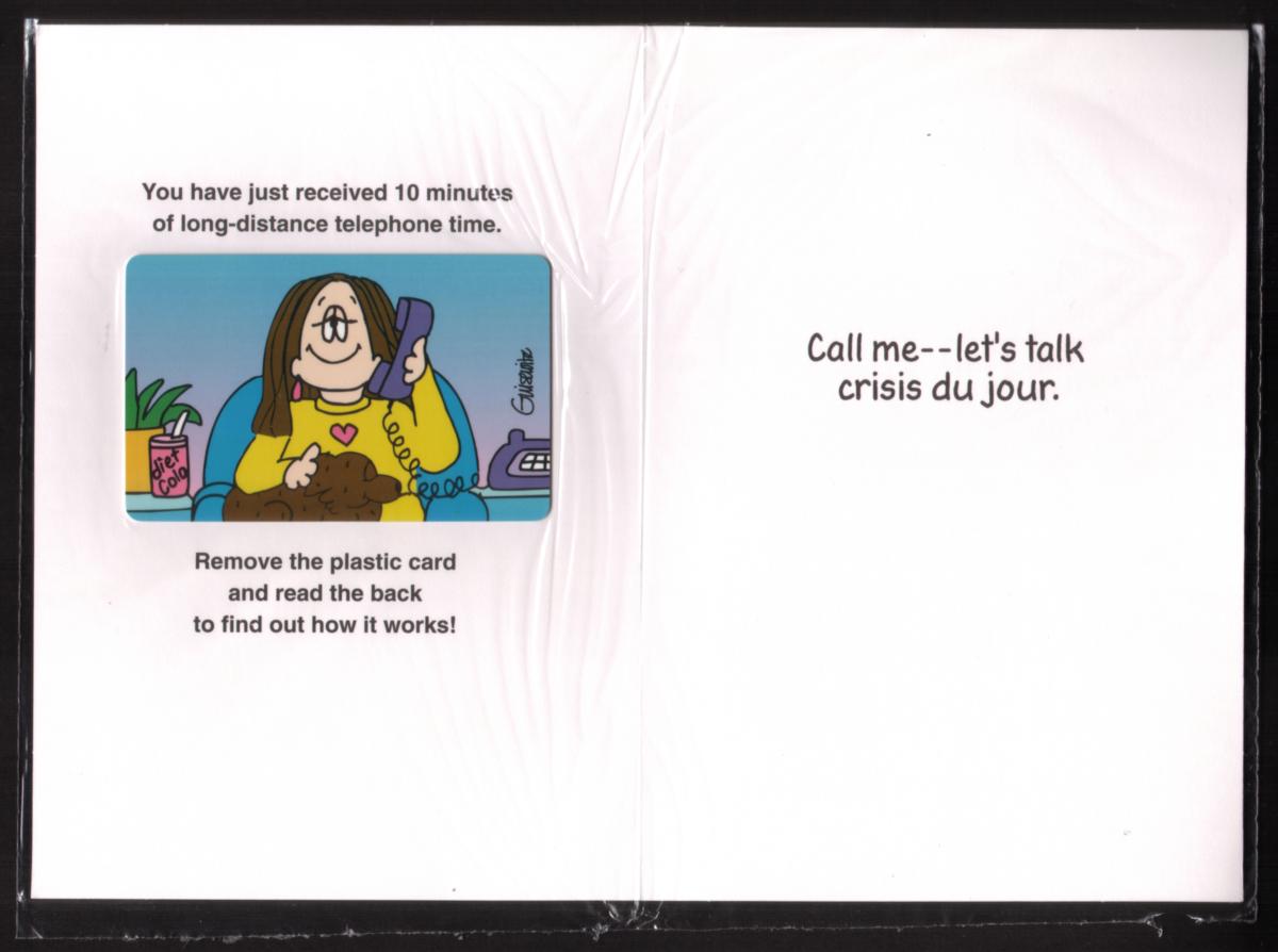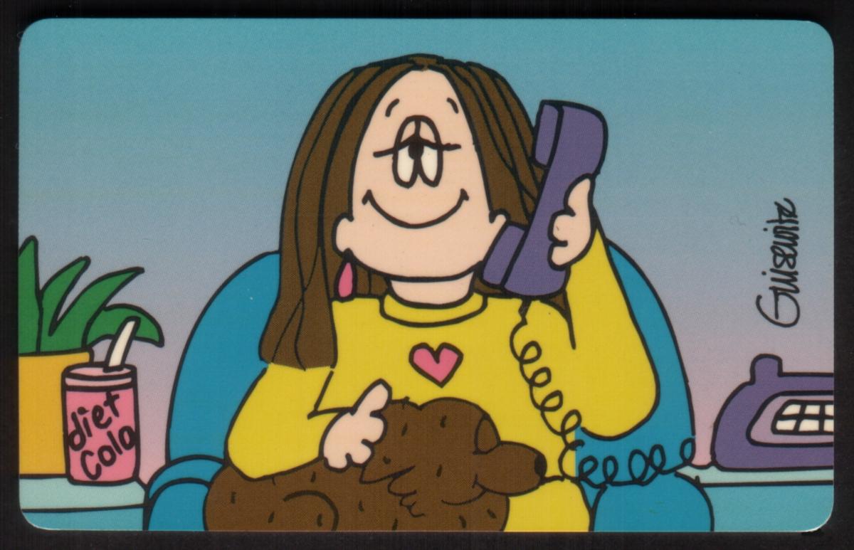 The overall color scheme is bright and cheerful, capturing a familiar and warm domestic moment. The card combines themes of telephones, animals, and beverages, specifically diet cola, as highlighted in the imagery. This piece is produced by Hallmark (Sprint), connecting the collectible to a recognized brand known for greeting cards and licensed products.