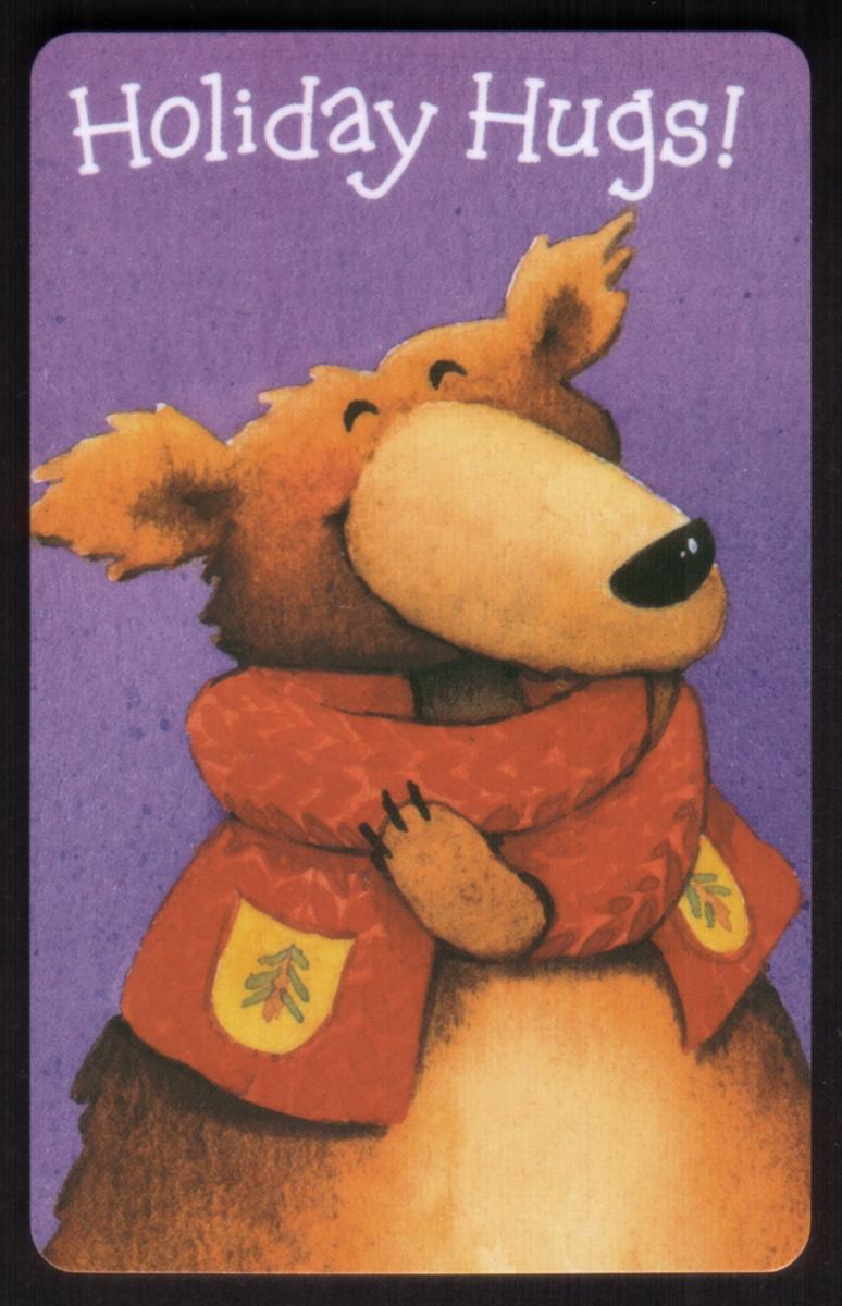 The overall design conveys a warm and festive message suitable for the Christmas and holiday season. The card is linked with Hallmark and the Sprint brand, dated 1994, and is identified as "Holiday Hugs" Bear Hugging based on the keywords provided. This item is associated with holiday greeting themes and is part of a collectible series related to Christmas greetings.