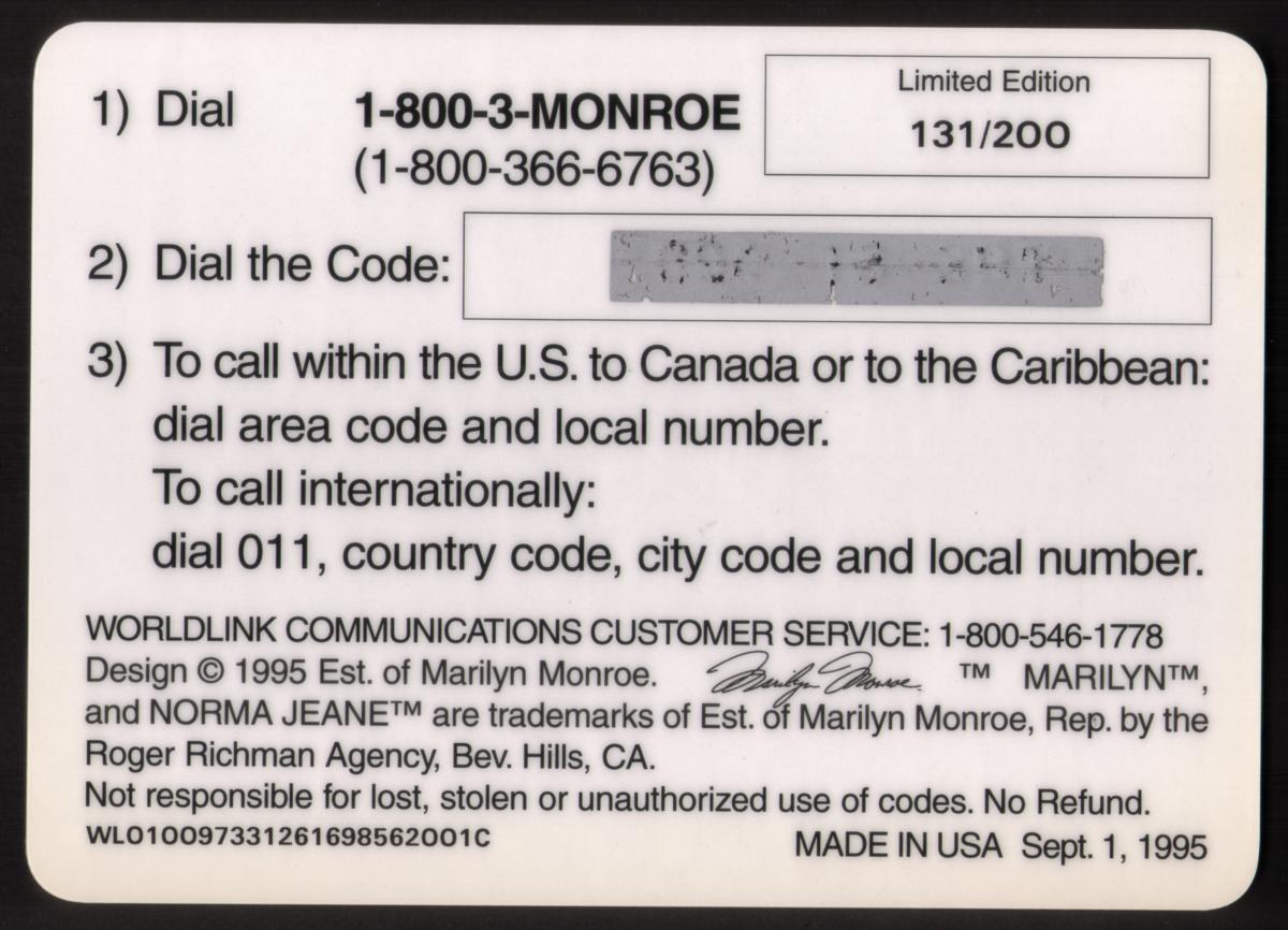 Since we have the world's largest inventory of USA phonecards for collectors, you will not necessarily receive the identical serial/batch/PIN number that we have scanned/pictured.