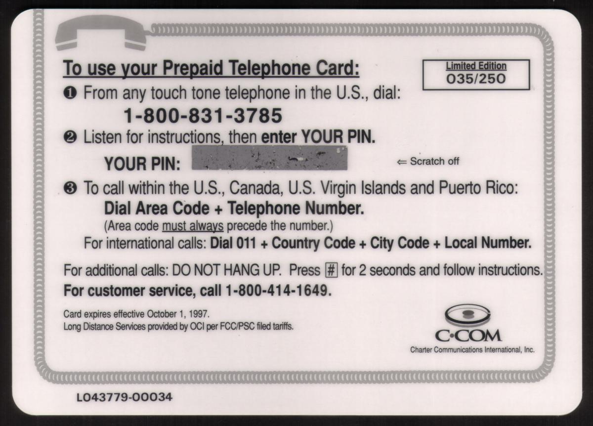 Since we have the world's largest inventory of USA phonecards for collectors, you will not necessarily receive the identical serial/batch/PIN number that we have scanned/pictured.