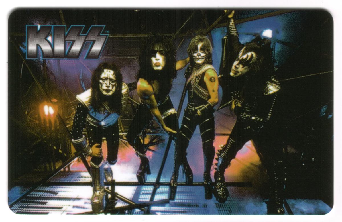 This card highlights the energy and signature visual style of KISS, known for their influential role in entertainment and rock music. The image captures the essence of their on-stage personas, combining elements of musical performance and theatrical presentation.