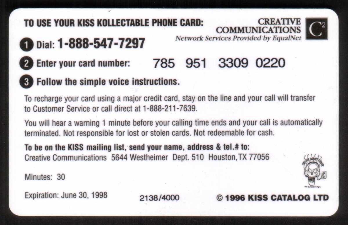Since we have the world's largest inventory of USA phonecards for collectors, you will not necessarily receive the identical serial/batch/PIN number that we have scanned/pictured.