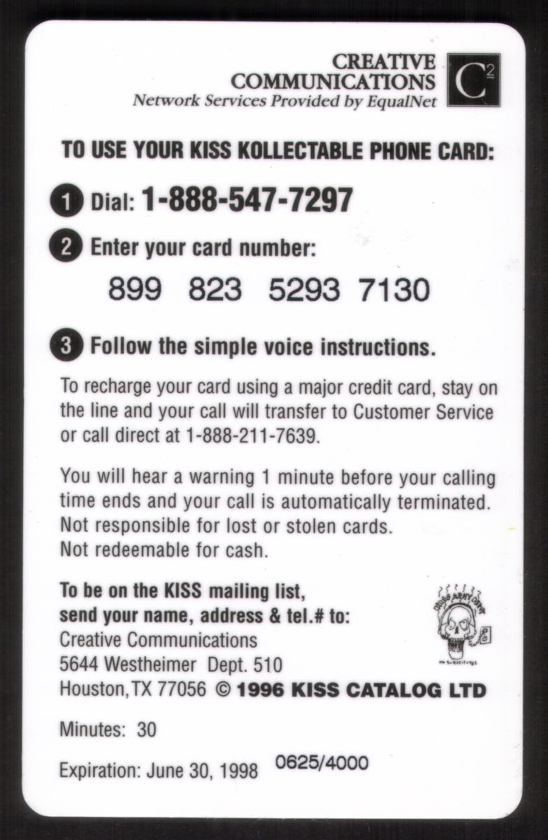 Since we have the world's largest inventory of USA phonecards for collectors, you will not necessarily receive the identical serial/batch/PIN number that we have scanned/pictured.