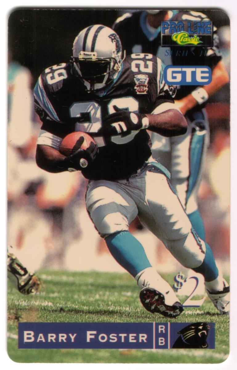 The card’s title, "Proline 2: $2," suggests it was issued as part of a set tied to football promotions or collectibles connected to the National Football League. The color scheme includes blue tones related to the logo and the card’s design elements, reinforcing its visual identity within its series. The card is a tangible collector’s item honoring Barry Foster’s football career, consistent with official NFL collectible memorabilia.