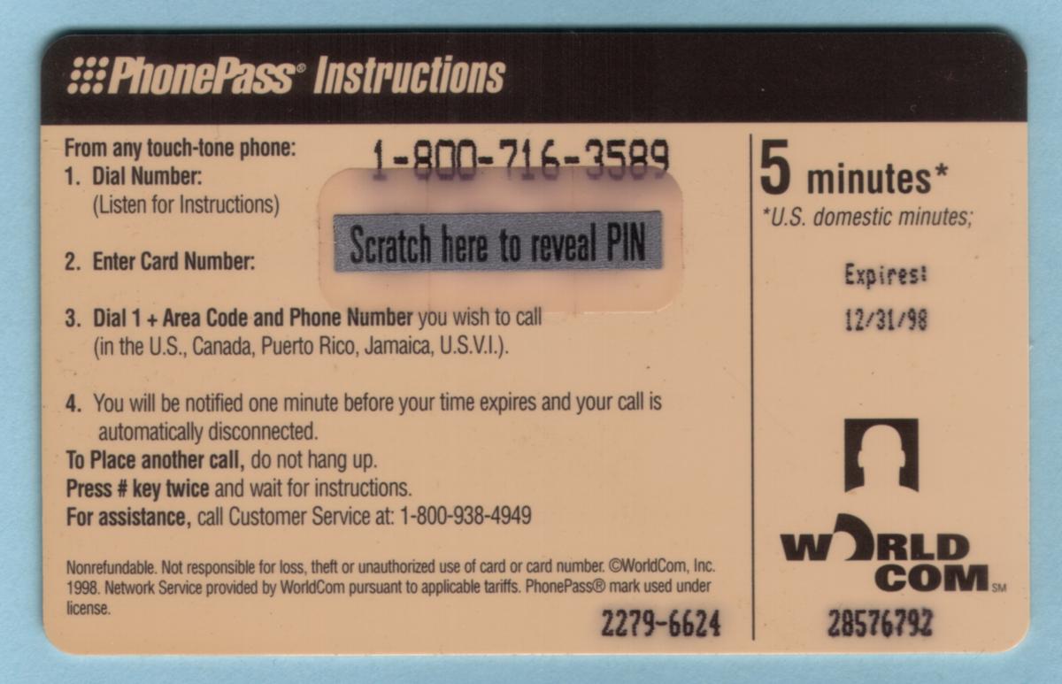 Since we have the world's largest inventory of USA phonecards for collectors, you will not necessarily receive the identical serial/batch/PIN number that we have scanned/pictured.