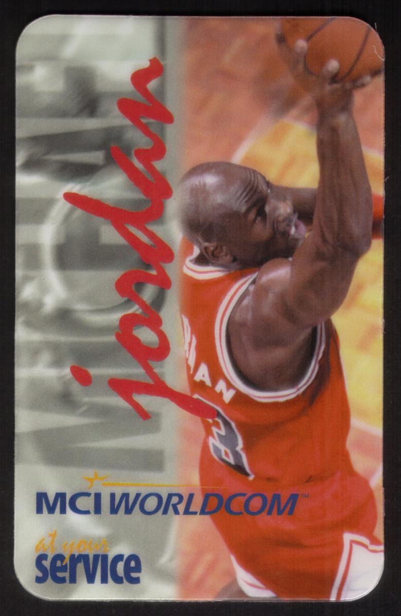 The text "MCI WorldCom" is prominently displayed on the card, along with the year 1997, connecting this collectible piece to the corporate promotional campaigns held during that period. The card is designated as a promo item, celebrating both Michael Jordan’s basketball excellence and MCI WorldCom’s marketing efforts related to wholesale customer service.